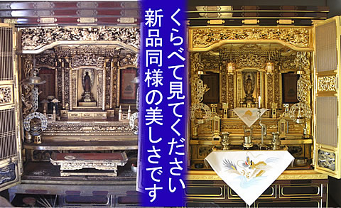塗り部分と金箔が新しくなるので新品同様の仕上がりになります。